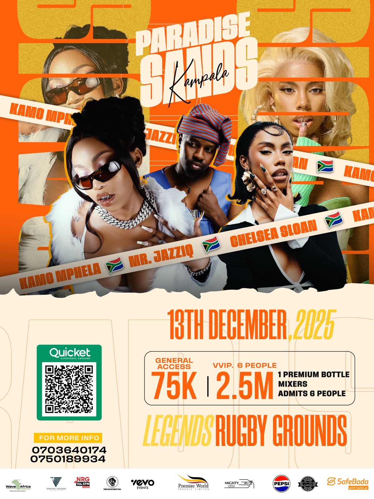 Escalations brings the heat to Greenyard Beach Hotel with the ultimate beachside party. Headlining are Amapiano stars Kamo Mphela and JazziQ, guaranteed to deliver electrifying performances. Expect great vibes, top DJs, food, drinks, and an unforgettable beach experience.