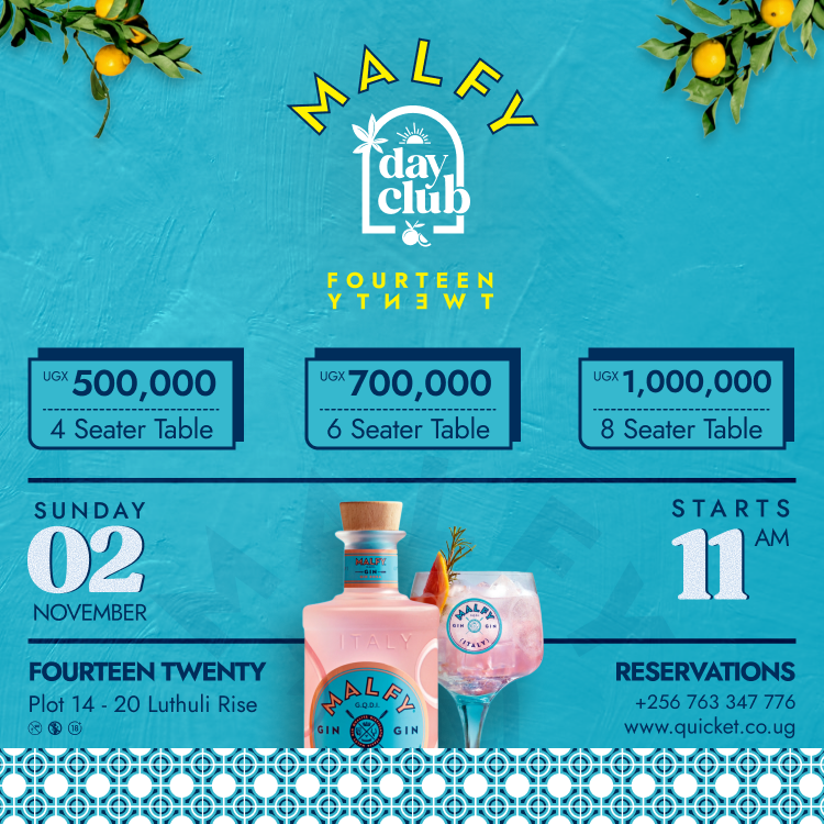 Indulge in Malfy Gin cocktails, gourmet brunch platters, and the best of house music spun by Kampala’s top DJs.