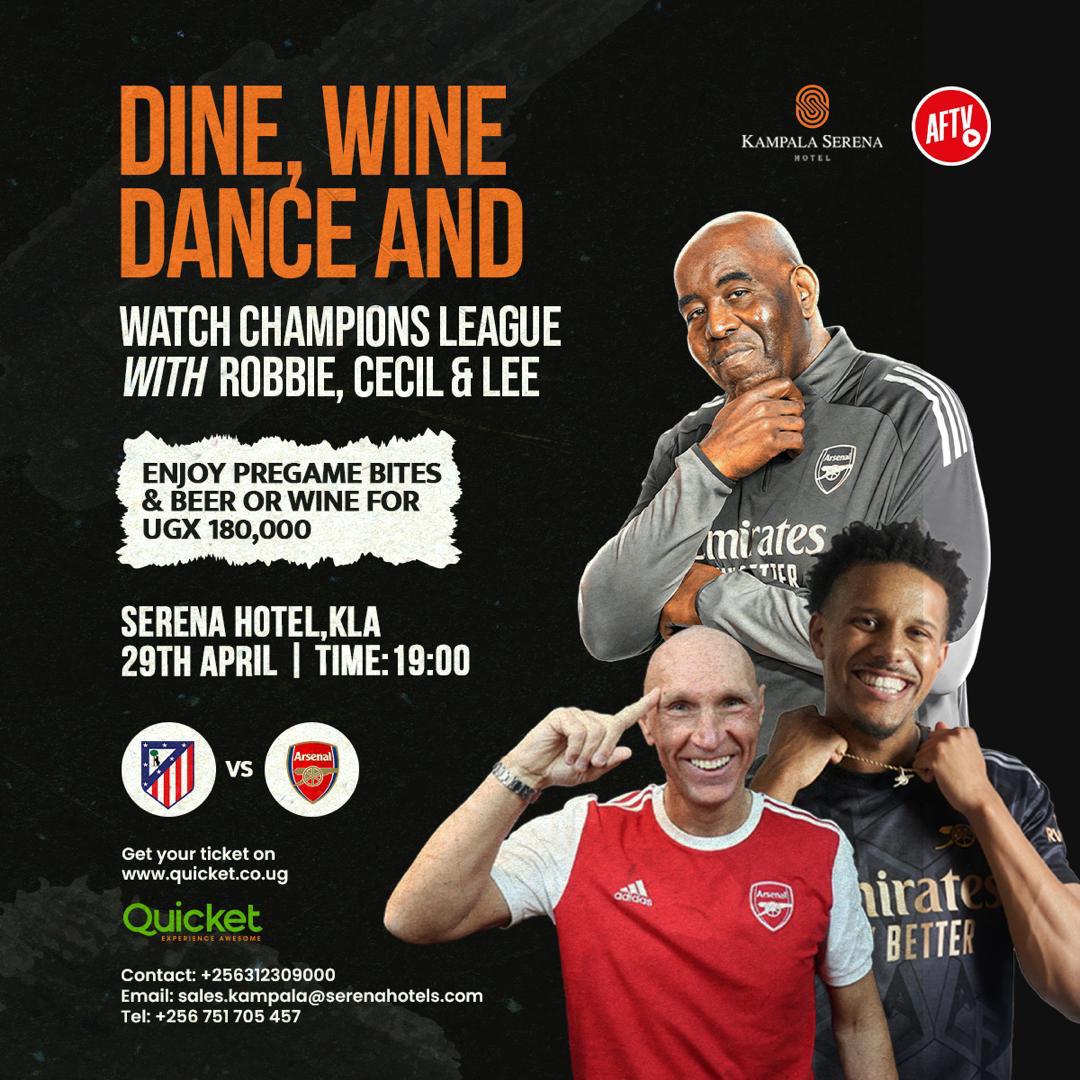 The AFTV Arsenal Watch Party (VIP) brings that same energy to Kampala, offering fans a premium experience to dine, wine, dance, and watch the game alongside fellow supporters. With special appearances from AFTV personalities, a vibrant atmosphere, and curated hospitality, this is more than just a match screening—it’s a full matchday experience.