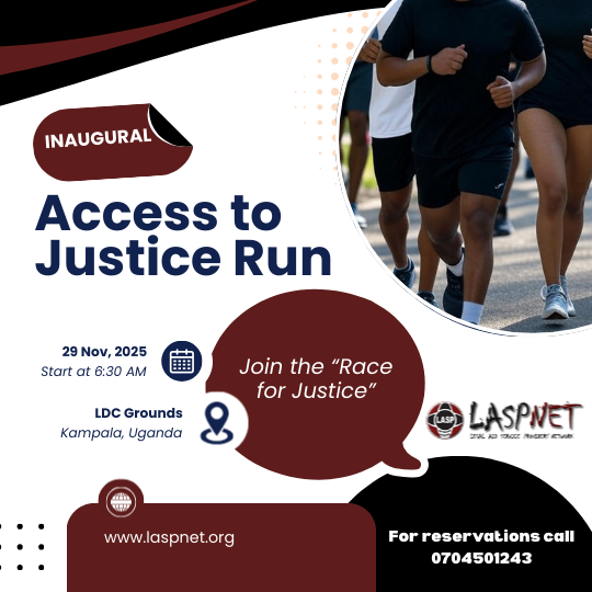 LASPNET is national member based Non-Government Organization that was established in 2004 to provide strategic linkages and a collaborative platform for legal aid service providers (LASPs) in Uganda in order to maintain a common front to relevantly interface with Justice Law & Order (JLOS) on Access to Justice and Rule of Law issues. Currently, LASPNET has 60 LASPs spread across 83 districts in the country, 13 honorary members including 5 Justices of the High Court, Founder members, JLOS Stakeholders and 18 Individual Associate Members.